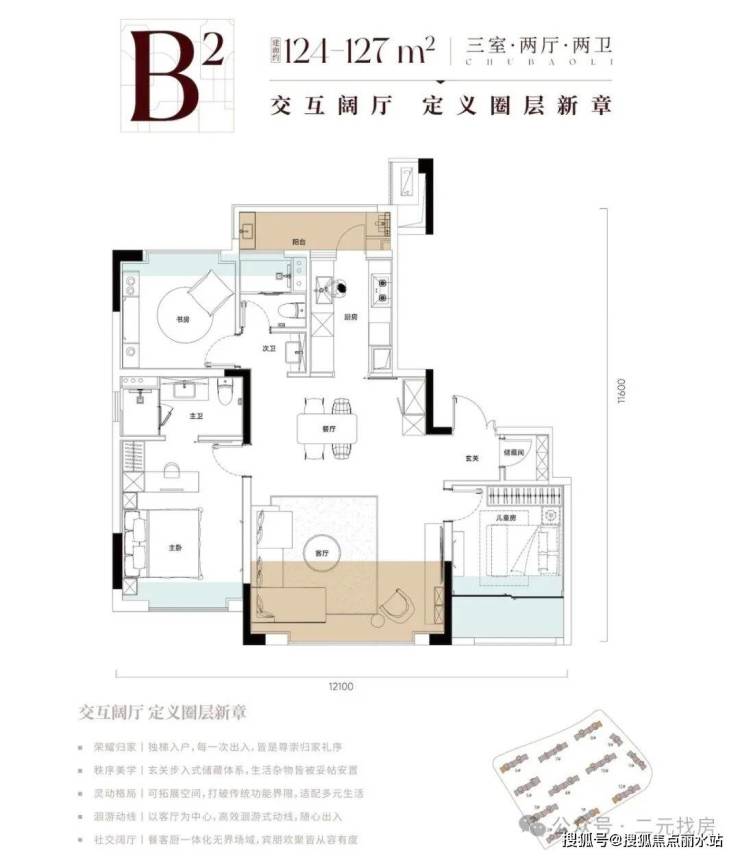 住宅整体建面约12万㎡,容积率仅2.85,由12栋小高层、高层围合而成,总高10-26层,两梯两户设计。