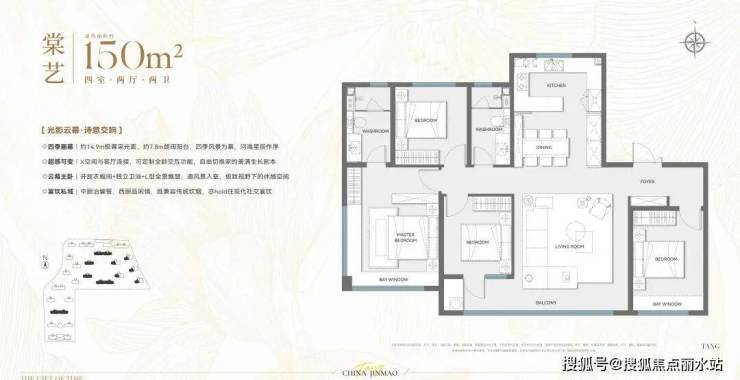 建面约150㎡户型,约14.9米极幕采光面搭配可变的X空间,为生活提供多种可能性。云幕主卧的L型全景飘窗,躺着就能看风景,这样的主卧配置在同等面积段里真的找不到对手!