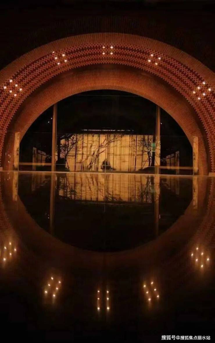 穿过以单臂悬挑结构打造的「风雨连廊」。廊外,是超600㎡的「五感庭院」,约6米高悬壁飞瀑,约160平镜面水景,层层叠水结合乌桕,营造出东方意境的独有画面。