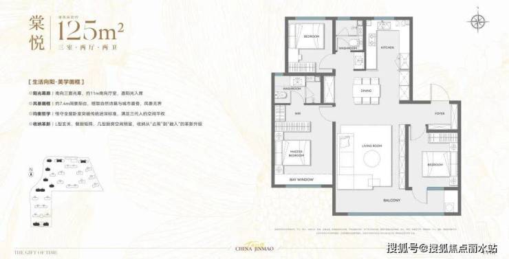 建面约125㎡户型,堪称“神级刚改户型”!约11米南向三面光幕,约7.4米阔景阳台,把风景“装裱”进家里。L型玄关和矩阵收纳让收纳从“占用”变成“融入”,这设计真的很懂生活!