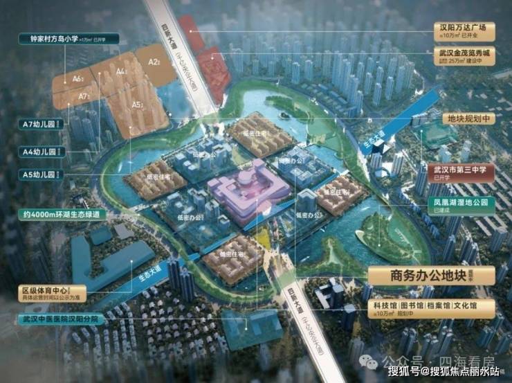 方岛金茂晓棠总建面约130万方,包含住宅、商务文化、企业总部、商务办公、学校、购物中心等用地,是四新板块升级的重量级楼盘。