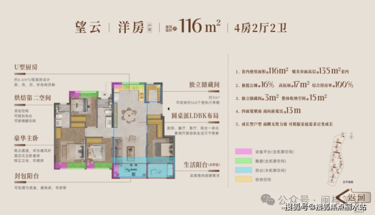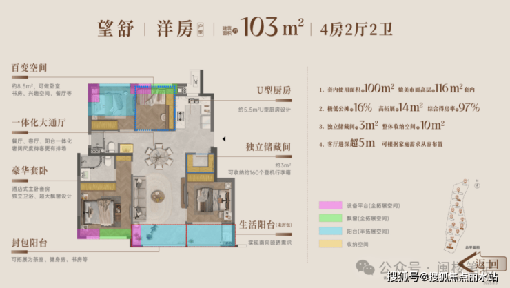 以建面116平户型为例,得益于“零公摊”设计理念,项目套内使用面积可以达到116平左右,几乎是市面上135㎡户型(传统得房率仅75%-85%)才有的使用空间,相当于在套内“多送了一间房”。