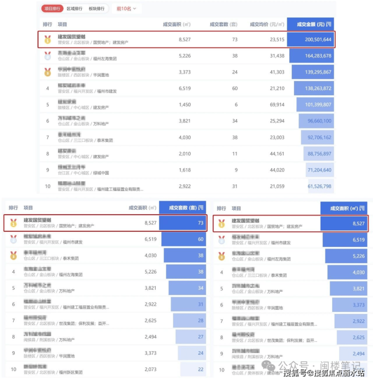 此外,根据克而瑞权威机构的最新统计,今年9月份,建发国贸·望樾以73套的成交套数、8527㎡的成交面积以及2亿元的成交金额,成功斩获福州五区及闽侯普通住宅单月成交套数、成交面积、成交金额三项榜单的TOP1,荣膺福州楼市“三冠王”。