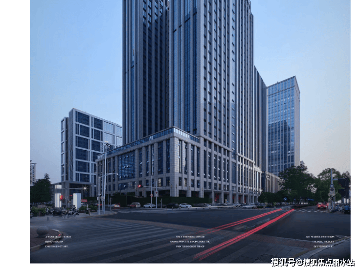 由知名设计师李少渠操刀设计,灵感来源于欧洲Art Deco风格,外立面采用进口巴西白玫瑰石材搭配玻璃幕墙,呈现简洁大气的现代感。