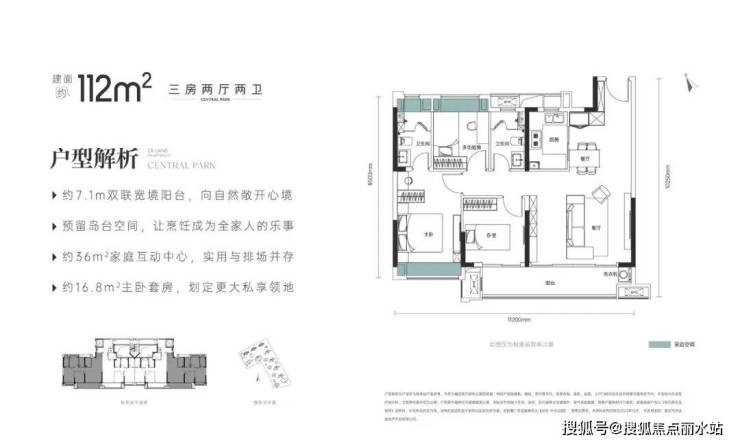 建面约110-112平三房两厅两卫: