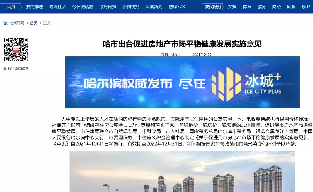 哈尔滨市住建局联合市自然规划局、市财政局等8部门制定《关于促进我市房地产市场平稳健康发展的实施意见》(下称《意见》),在近期楼市降温大潮中率先出台利好政策。