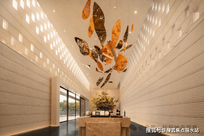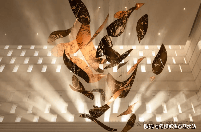 归家大门长约85米,门头高约10.8米,取“十”喻圆满、“八”寓吉祥之意,彰显非凡气度。门前以法国艺术家SYLVESTRE GAUVRIT创作的《逸云》雕塑起笔,复现紫金山山峦剪影,融合叠水“秘境”。