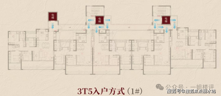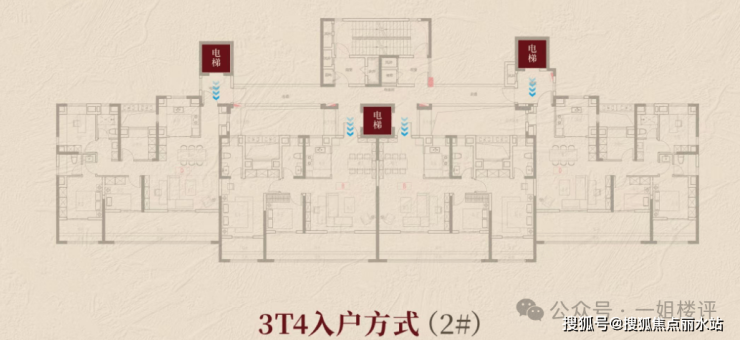 2号楼三梯四户,两边都是独立电梯入户,中间电梯管2户,对开门设计,也能实现独立入户。
