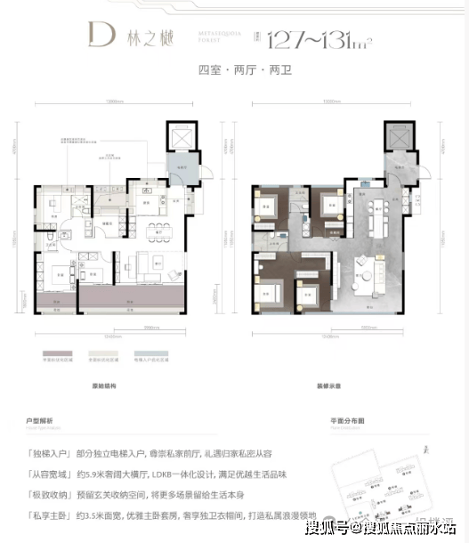 重点来看户型:项目宣传优化后得房率超97%(不计算电梯前室),根据样板间展示来看,空间感还是不错。