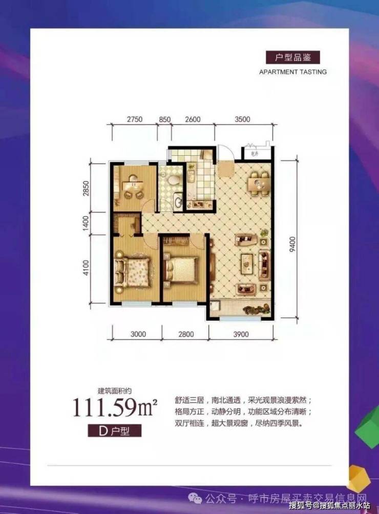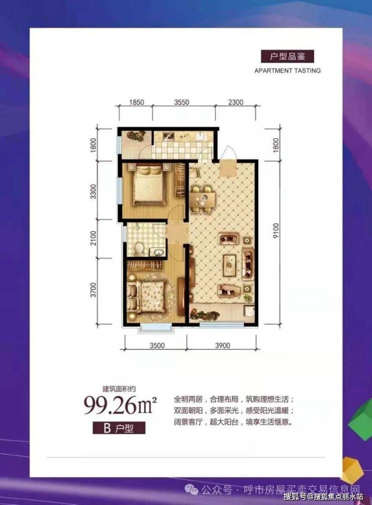 面积:77-99平米两居室,111-143平米三居室,全明户型,南北通透,一梯两户,空间利用率高。
