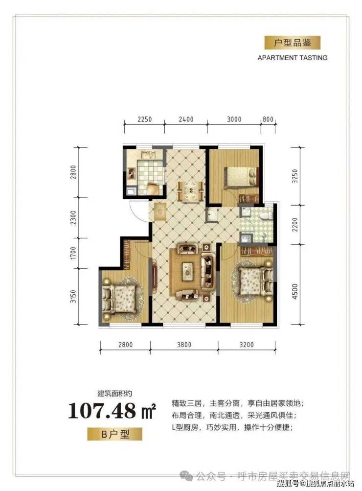 35号楼,国标三居一梯两户107平米