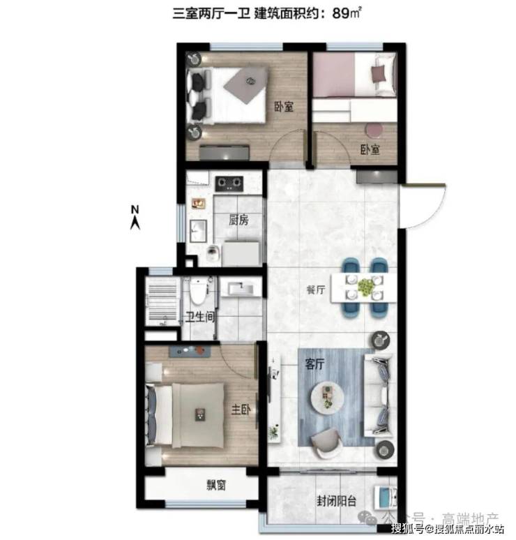 【建面89㎡3居】73.0-85.0万-分布于一期8栋 五期2号楼 六期8号楼 六期5号楼 等,3梯6户,层高2.90米,总楼层33F