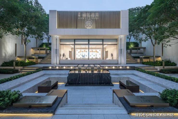 展示区采用现代典雅轻奢风格,结合车库入口景观一体化设计,设计中采用对称的手法,突出建筑的昭示性,为人们的归家流线带来尊贵的仪式感。