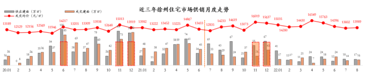 2021年下半年起,徐州房地产市场经历了剧烈变化;2021年上半年商品住宅成交298万㎡,下半年商品住宅成交192万㎡,下半年成交量仅为上半年的65%,同比2020年下半年商品住宅成交377万㎡,成交量腰斩。