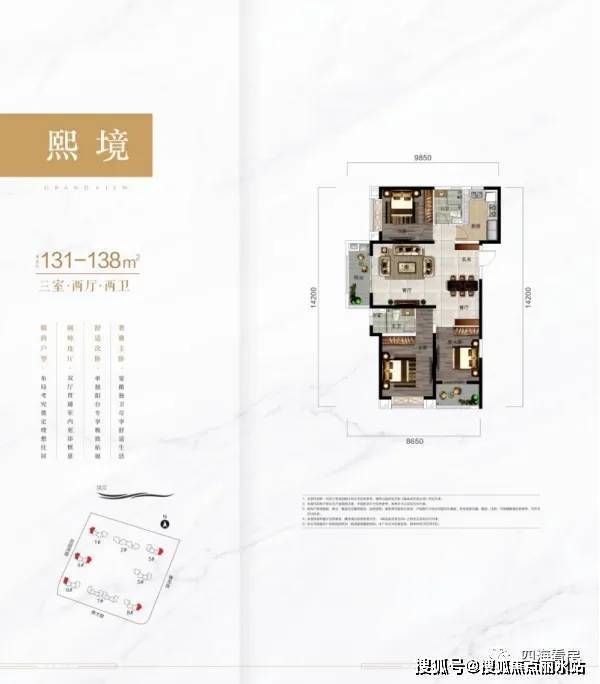 主力户型为建面约120-142㎡三房至四房,面积段属于改善产品。