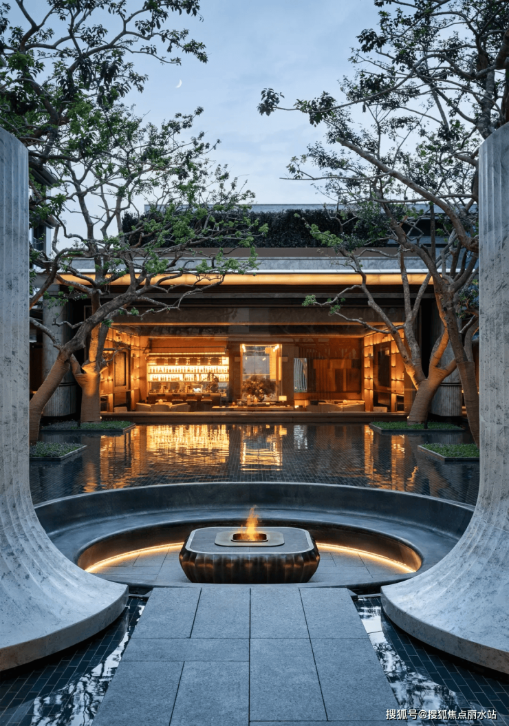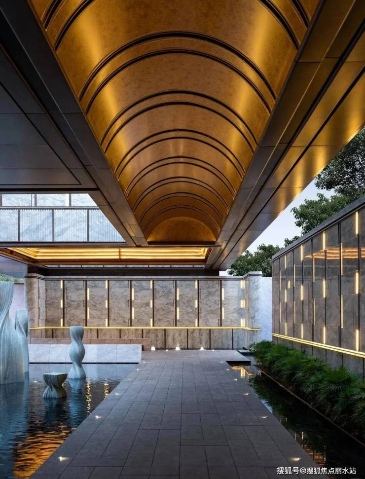 拱廊与室外灰空间接景观水院,结合礼序归家水庭与游廊式路径,共同构成“四进庭院”的归家体系。通过精心组织路径与尺度转换,营造出小而精、序列丰富的场景体验。