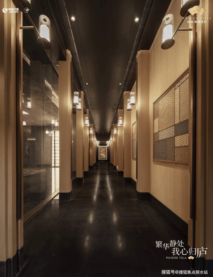 地下一层艺术走廊的打造,纵深约20米,两侧木头结构的柱廊,搭配上精致造型的壁灯,温润而不失艺术气质。