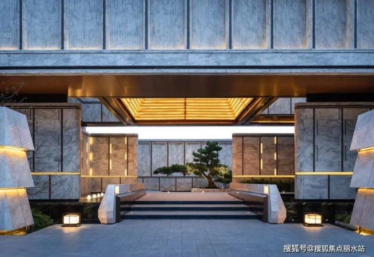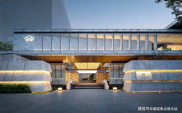 小区主入口以高奢酒店为灵感,呈现约120米的恢弘界面,精选“漫云灰”石材一体筑造,并匠心融入宁波非遗青瓷艺术。整体如一幅徐徐展开的山水手卷,为归家之路注入第一重尊崇仪式感。