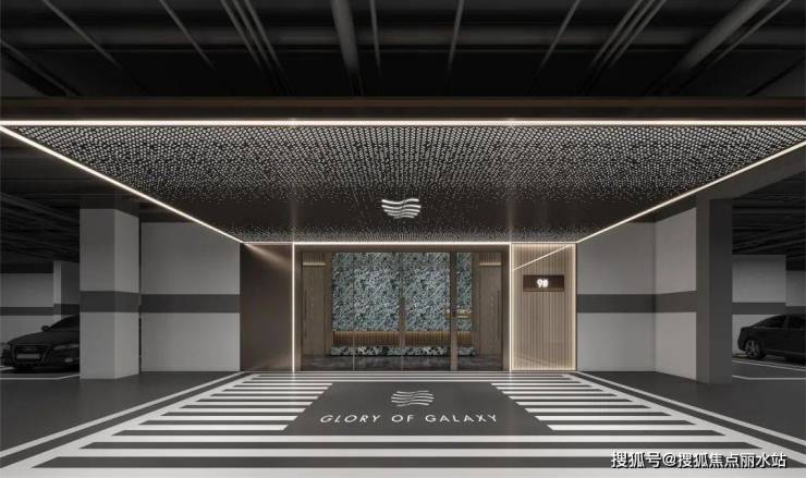 在地下车库,同样呼应了步行归家的景观,在地下室的入户也设计了星空顶。值得一提的是,当许多豪宅业主都在抱怨停车场被减配时,滨江云河颂还在默默增配。