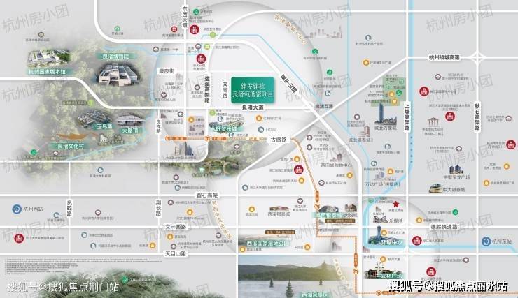 低密纯墅居,离尘不离城项目西邻良渚文化村(大屋顶、玉鸟集旁),占据板块内优越位置,坐拥水到渠成的醇熟生活配套,出门就是繁华场,近距离享受良渚文化村所有内部、外部配套。