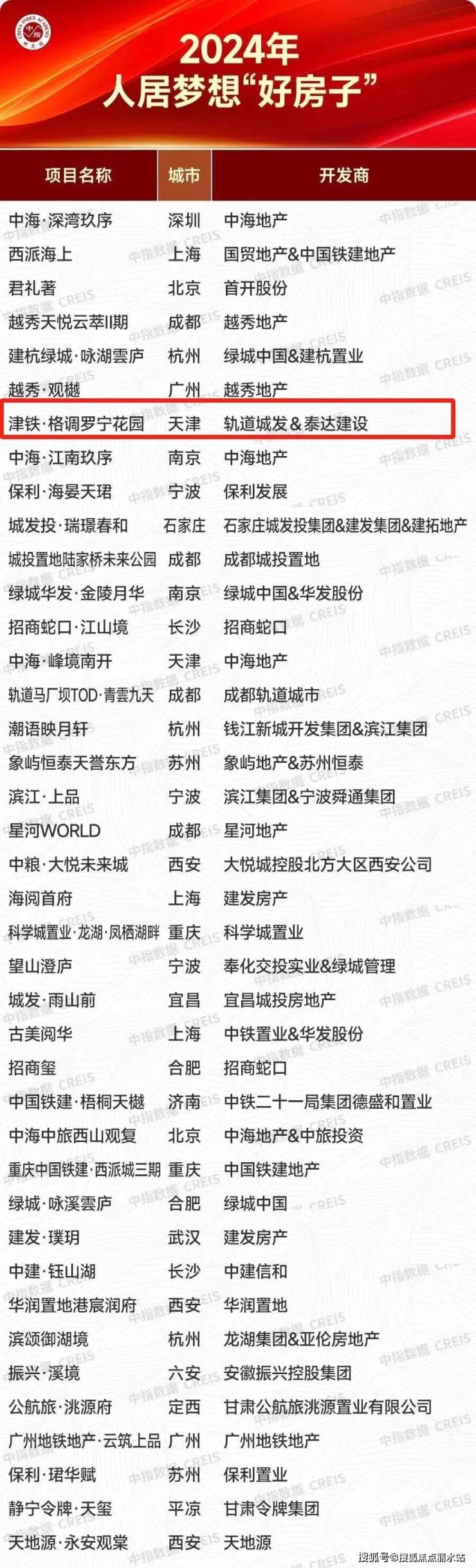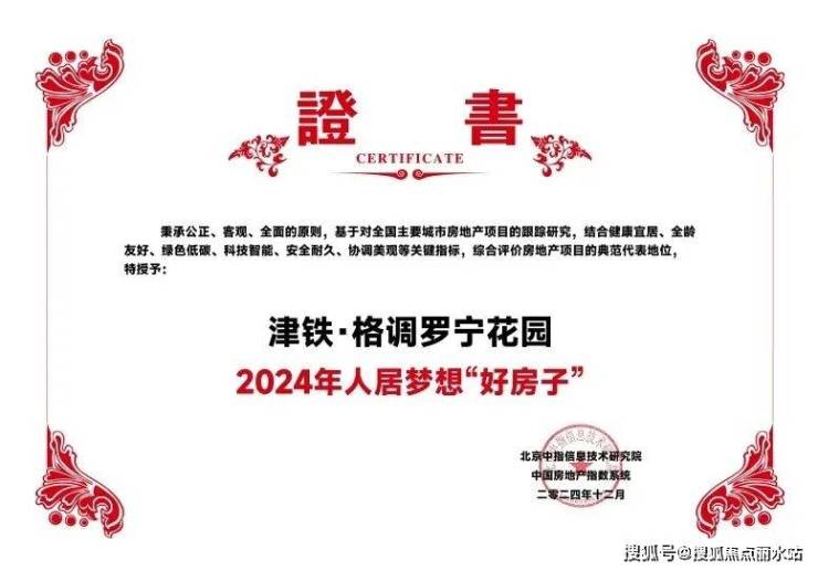 津铁·格调罗宁花园项目,由天津轨道交通城发开发,天津泰达建设集团代建,强强联合担当城市更新使命,经研究组评审与网络票选相结合的方式,围绕健康宜居、全龄友好、绿色低碳、科技智能、安全耐久、协调美观等六大维度,从全国120个项目中脱颖而出,荣膺『2024年人居梦想“好房子”』。