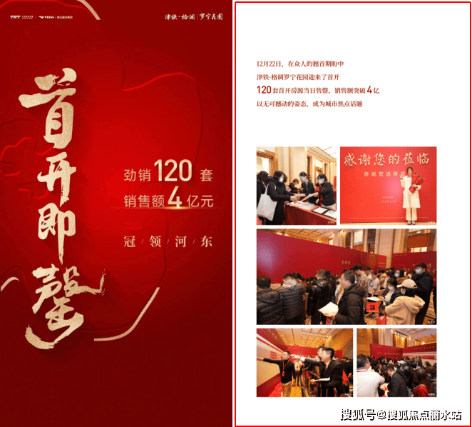 12月22日,津铁·格调罗宁花园,河东区井冈山路城市更新项目迎来首开,小高89㎡/102㎡三室,洋房107㎡三室/127㎡四室共计120套房源全部售罄。 津铁·格调罗宁花园——以4亿销售金额,迎来首开即磬。 津铁携手格调强势起笔,借城更之势,补齐区域新品空白,河东“内卷”时代打破僵局,“现象级”燃销的背后是21年如一日的坚守,津铁·格调,至强联合!灿燃售罄,引爆楼市。新品即将强势加推,让拥有胜过等待。