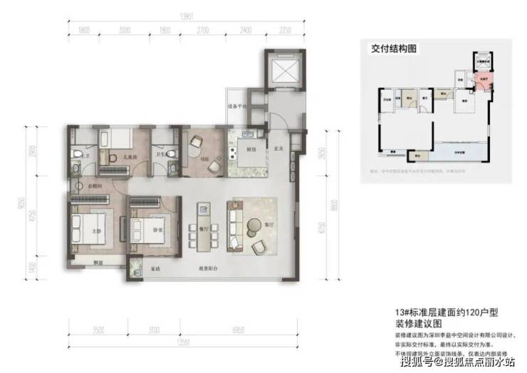 璞拾云洲120㎡户型示意图,仅供参