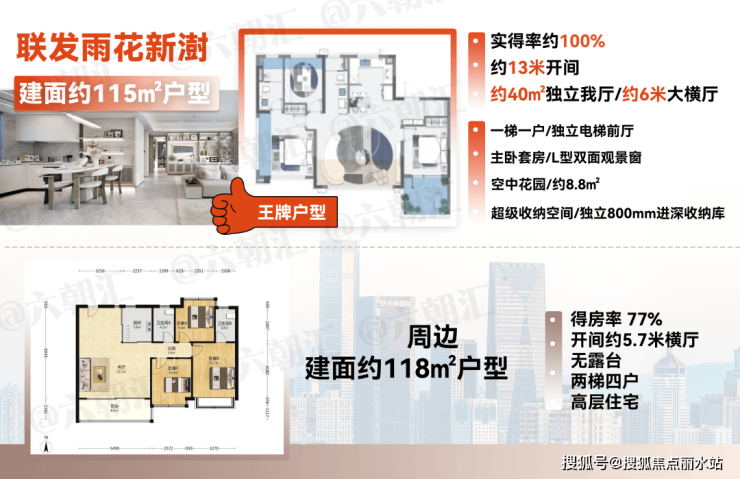 ·建面约115㎡户型实现区域内罕见的一梯一户。让归家动线兼具仪式感与整洁视野。