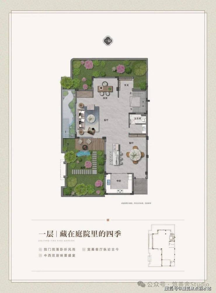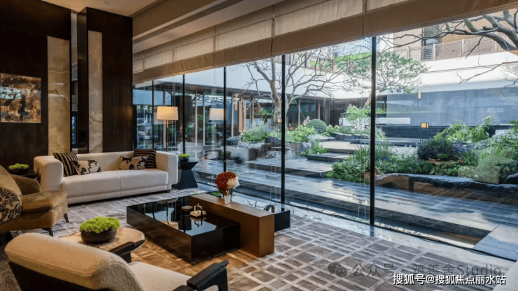 穿过恢弘大门,步入其中,不经意间便邂逅百年乌桕、日本黑松等珍稀名木,以及普拉达绿奢石、巴西黑金沙等奢华材质。漫步洄游式的四方形游廊,空间布局立体流畅,层次分明,松涛与泉水、奇石与清溪相映成趣。这里,宋式园林的精粹得以完美呈现,漫步其中,您将沐浴在一条引人入胜的行进艺术之中。
