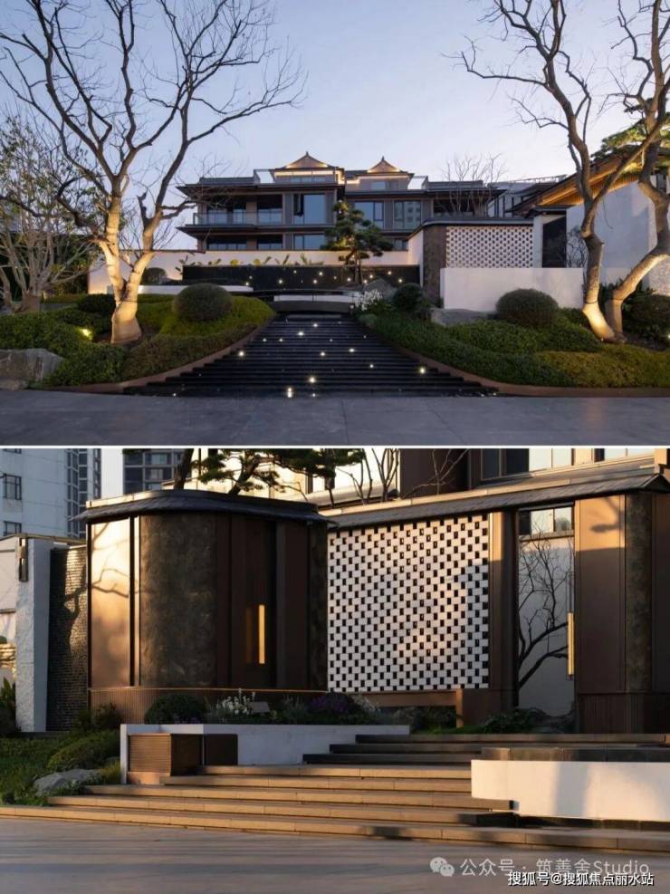立面汲取盛唐大明宫之神韵,帝京赋建筑型制尊崇三重檐与官帽高规格,展现出宫殿建筑的华丽与庄重,彰显威严非凡。融合经典中式美学与现代设计理念,巧妙演绎展翼飞檐、天青挂落、玉带悬鱼等传统元素,彰显匠心独运之境界。以现代审美视角,巧妙融入金属材质,营造出浓郁的东方人文气息,为业主献上“瑞意盈庭”的温馨祝福,让空间充满雅致与吉祥。