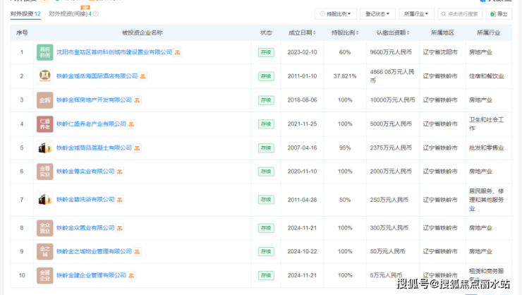 实则不然,通过天眼查这类背调软件,使用股权穿透的模块,实际查询到这家公司实际操控为铁岭金城集团,也即是项目案名“金城”二字由来。