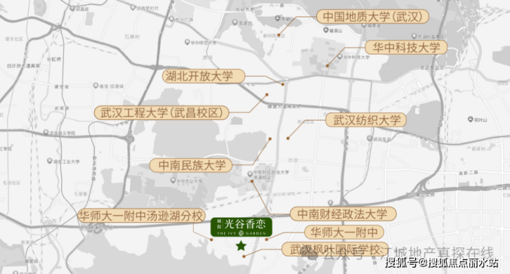 城投光谷香恋位于关山墅区,依靠区域产业规划、名校林立、双湖环伺等优势,形成了光谷最早的墅质生活区及醇熟生活。