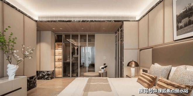 交付就带紫山水奢石、菲律宾白贝母背景墙,细节见品质;主卧套房配步入式衣帽间、双台盆卫浴,次卧也都是套房,私密又尊崇。