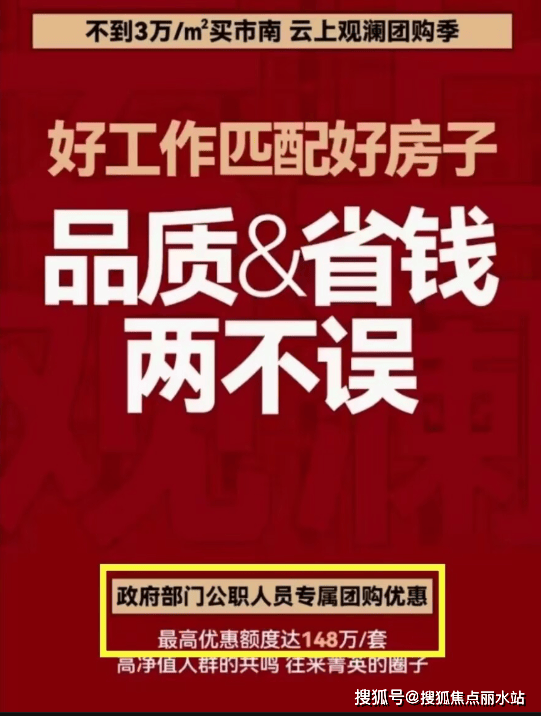这张海报竟然还写着:好工作匹配好房子。公职人员专属,这是搞“工种”歧视吗?其他人员,不配买云上观澜吗?