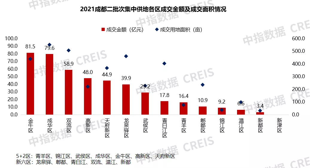 9月15日-17日,成都二批次集中土拍历时3天,成功落幕。成都本次参与土拍58宗土地,最终成交52宗,共计成交用地面积3664.4亩,成交金额446.3亿元。从区域来看,金牛区成交8宗,成交金额81.5亿,成交用地面积439.9亩;其次为成华区,成交5宗,成交金额79.6亿,用地面积552.1亩;第三为双流区,成交7宗,成交金额58.9亿,用地面积507.3亩。