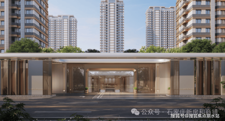 14.威仪社群大门,轻奢酒店式体验,定制精装风格让出入皆为不凡,承续归家门厅的至高礼遇。单元大堂墙面采用大面积定制化石材