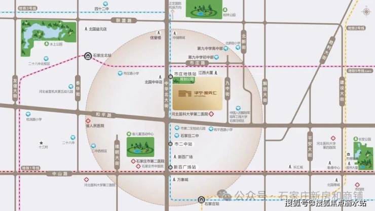 1、交通:中华大街(石家庄第二迎宾大道)、与和平路(豪宅一条街),地铁3号线、5号线(建设中)双地铁环伺,市庄站约400米,城市快速路一站式出行,举步即达城市核心商圈。