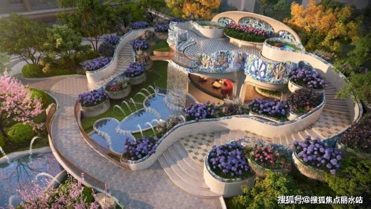 落差高达约20m纵深立体叠瀑,打造至今武汉前所未见、近乎魔幻的立体景观体系。