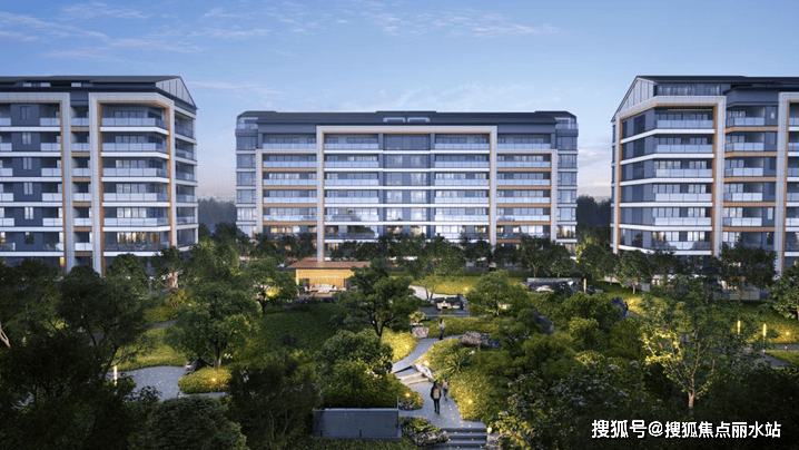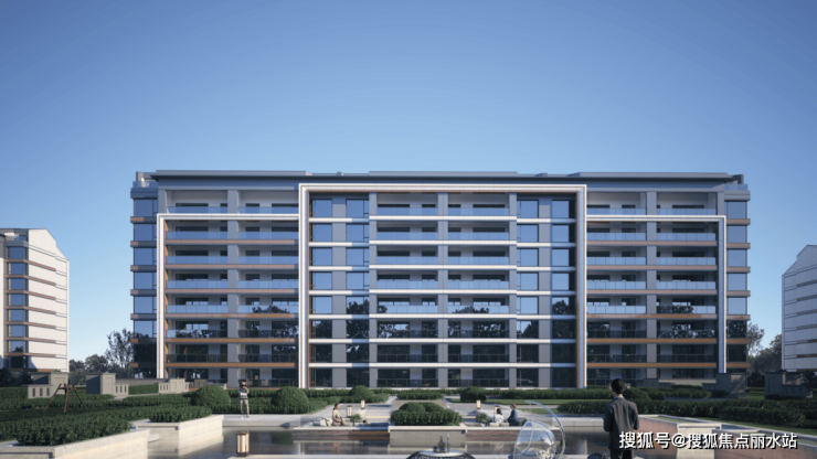 新中式+坡屋顶组合,立面局部采用铝板,南侧采用落地窗设计,形成超大玻璃幕效果。横向线条+竖向框线形成稳定均衡立面效果。
