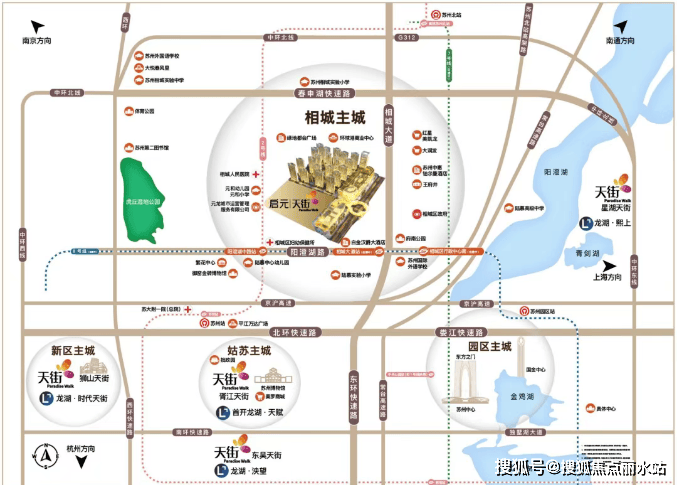 位于相城主城核心区,是苏州五大主城中发展潜力最大的板块之一。周边覆盖“一横一纵一环四轨三高铁”立体交通网络,地铁2号线、7号线、8号线(在建)、10号线(规划)环绕,15-20分钟可直达姑苏、园区湖东等核心区域,30分钟畅达上海虹桥,交通便利性极强。