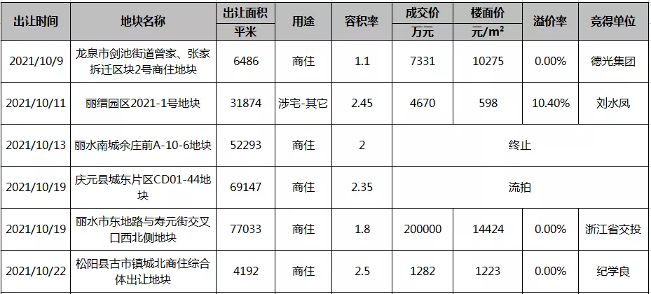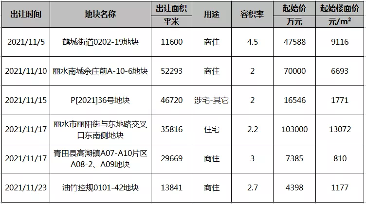 10月丽水涉宅用地成交面积约12万方,总金额超21亿!11月