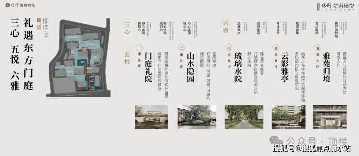 保利·姑苏瑧悦,大区设计灵感起源于《姑苏繁华图》,运用曲直、引隔、围透、藏露等造园手法,在有限空间内实现以小见大、步移景异的游园体验。将六大雅趣生活场景,植入到项目的景观设计中。以苏州古典园林造园手法,结合东方文人雅集,打造当代生活雅集。