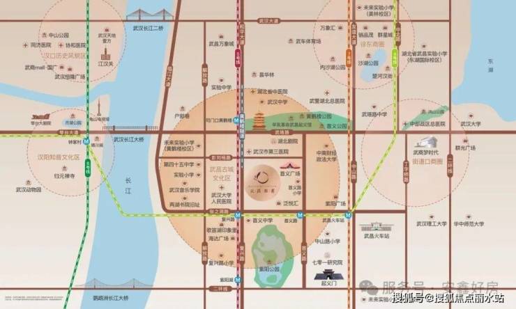 自驾:项目拥有立体黄金路网,走张之洞路和复兴路可快速抵达武昌各大板块;出门上武汉长江大桥则可通达汉口汉阳。
