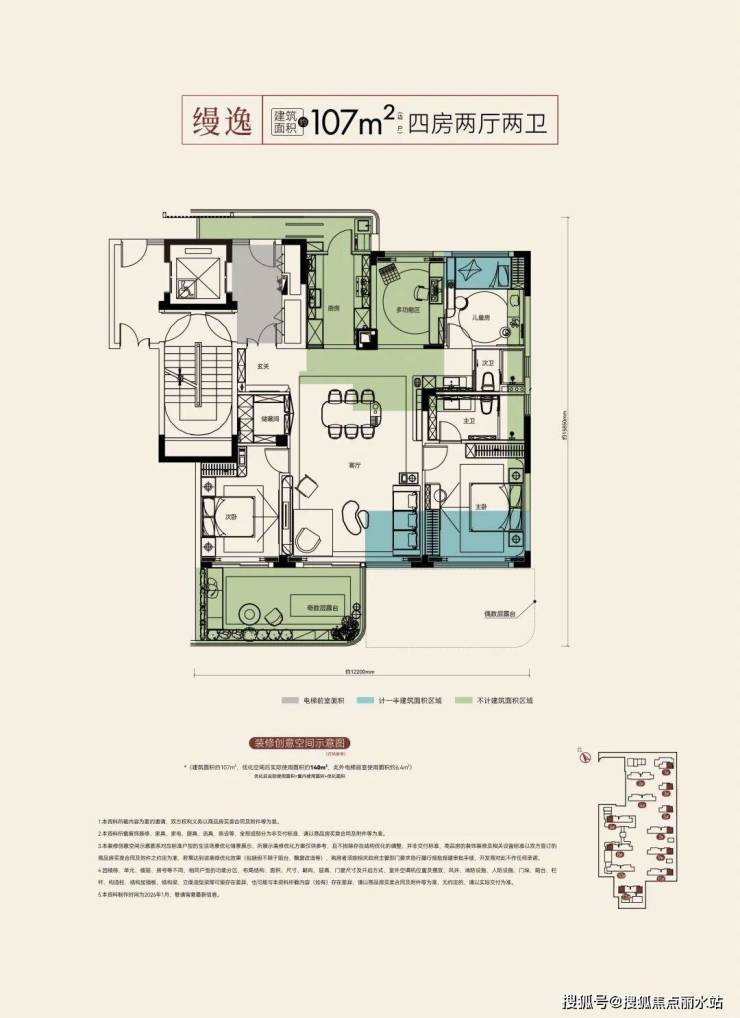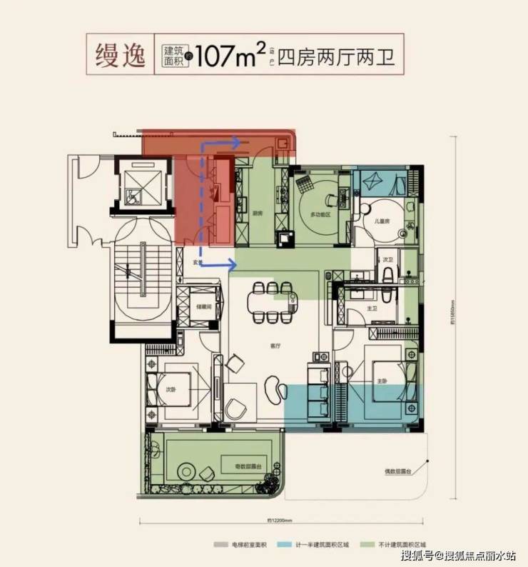 107㎡兼具实用性和功能性,是非常标准的大四房。