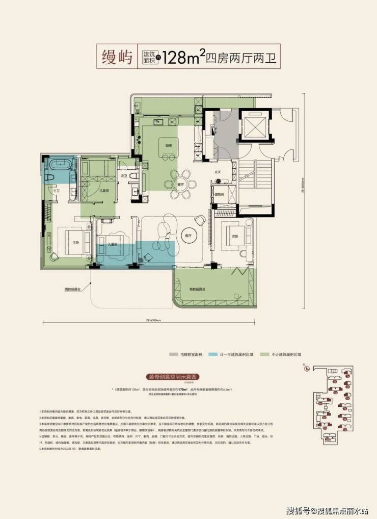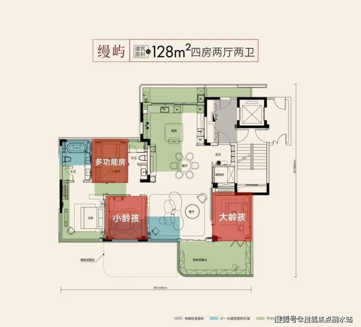 再来看128㎡,就是把得房率扛到约133%的幸运儿,绝对是你“想要一步到位”的大四房。