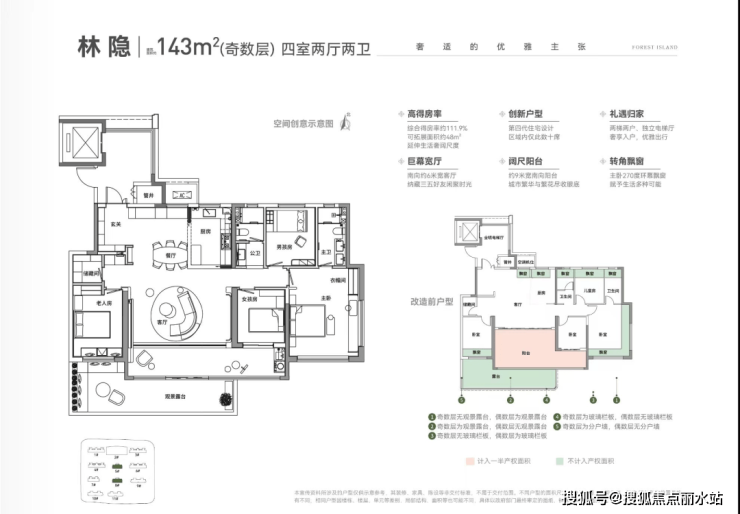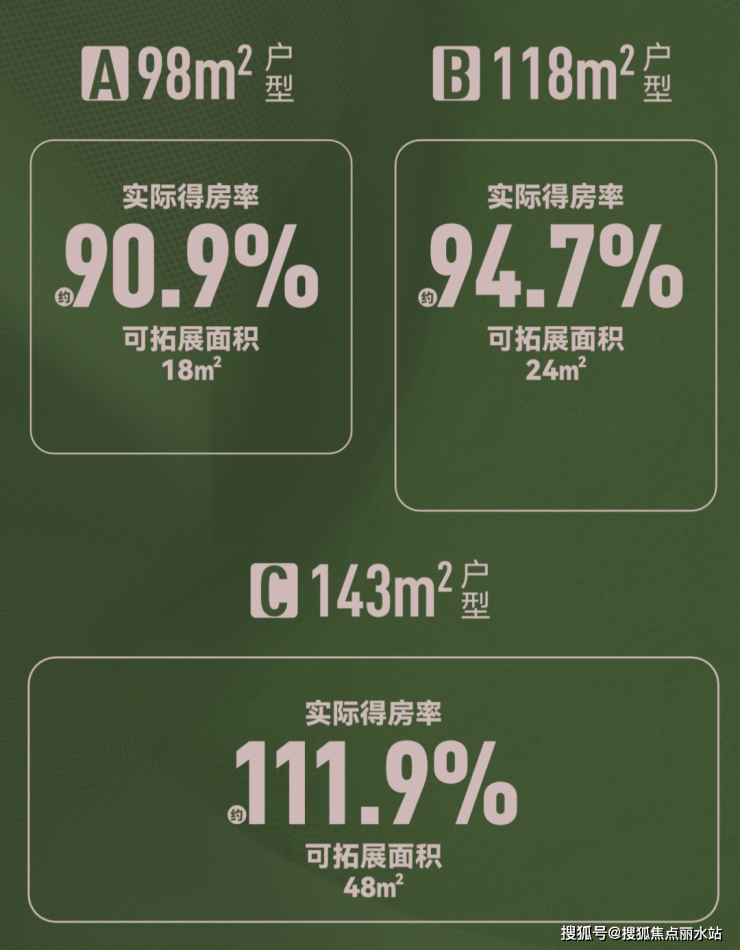 深研新一代客户居住痛点和需求,定制建筑面积约98-143㎡ 升级户型。
