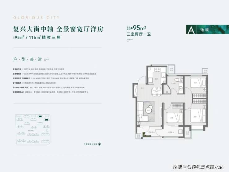 恒基滨河江来 平层户型·建面/95㎡
