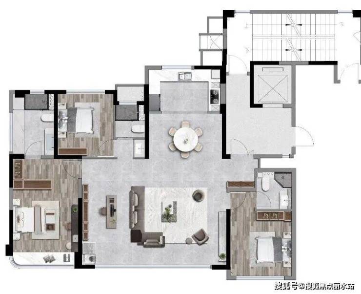 该户型整体几乎零浪费,结合四代宅政策,让每一个厅房都拥有阔绰尺度、大空间,实现面积充足的3+1房,大大提升了居住舒适性。