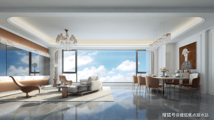 约7.2m开间阔绰横厅相当于全景采光巨幕,搭配餐客厨一体化设计,将公共空间巧妙整合,一气呵成。不仅能充分满足日常生活所需,更可兼顾休闲、娱乐、家庭互动与朋友聚会等多元功能,让每一次居家时光都充满仪式感与尊崇感。