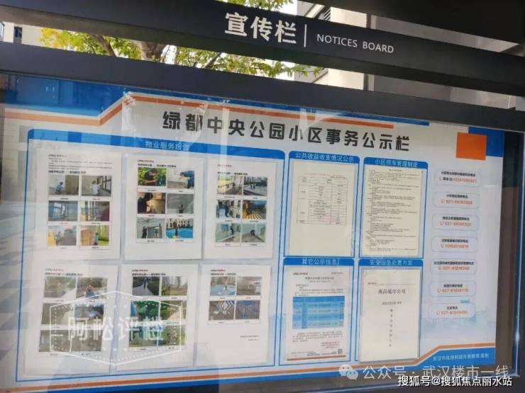 绿都中央公园配置的是自己的绿都物业。小区物业服务中心门前的宣传栏上,清晰地公示了物业各项工作计划和公共收益收支情况。该小区交付只有一年多,业委会尚未成立,主动公布公共收益收支情况,可说相当靠谱了。查询可见,绿都物业为全国百强物业,连续多年服务满意度处于行业领先水平。